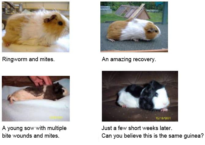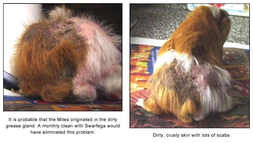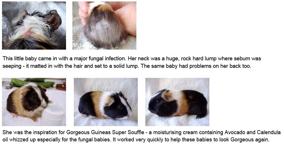 Mange Mites live under the skin and must be treated with Ivermectin from a Vet, but other surface skin problems can be helped with the range of Gorgeous Guineas products. I would always recommend that people choose either Veterinary products or Gorgeous Guineas products and not mix and match. If you are throwing a lot of products at a guinea pig, how do you know what is / is not working?